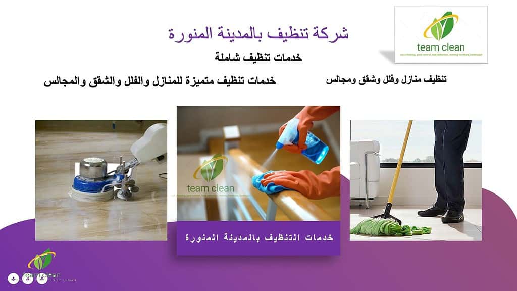 شركة تنظيف بالمدينة المنورة تيم كلين تقدم لكم أفضل خدمات النظافة وتنظيف المنازل والفلل والشقق والمنشآت بأقل الأسعار وأعلى كفاءة ودقة، وخدمات التعقيم ومكافحة الحشرات ومن الضروري الاعتماد على شركات النظافة لخدمات تنظيف الشقق بالمدينة المنورة، خدمات تنظيف المجالس والكنب والموكيت والسجاد وأفضل خدمات تنظيف بالبخار. وذلك للتمتع ببيت صحي نظيف خالي من الأمراض والميكروبات لصحة أفضل لك ولعائلتك .