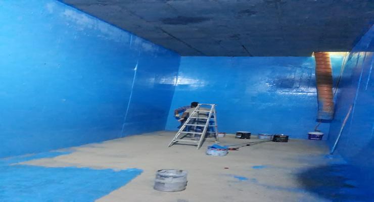 - الترطيب: يجب أن يكون السطح رطبًا عدة أيام بعد التطبيق لاستمرار التفاعل الكيميائي لضمان العزل الكامل، وفي بعض الحالات قد يحتاج الخزان إلى طبقة ثانية.